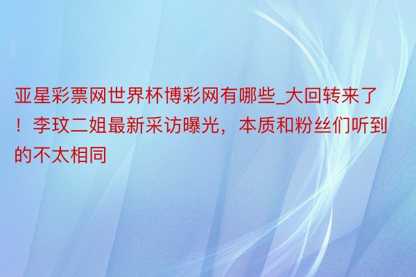 亚星彩票网世界杯博彩网有哪些_大回转来了!李玟二姐最新采访曝光,本质和粉丝们听到的不太相同